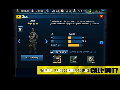 • Ohjaa ja taso ikoni sankareita Call of Duty franchise, kuten Call of Duty 4: Modern Warfare, Call of Duty: Black Ops II, ja enemmän. Jokainen sankari on oma etenemistä järjestelmä ja ainutlaatuinen Killstreaks.