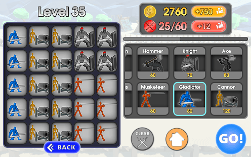 Käytä kulta Jokaisessa tasolla valitsemaan joukkoja ja tarkasti sijoita ne kartalle. Kosketa "GO" aloittaa taistelun simulaattori vastaan vihollisen armeijan.