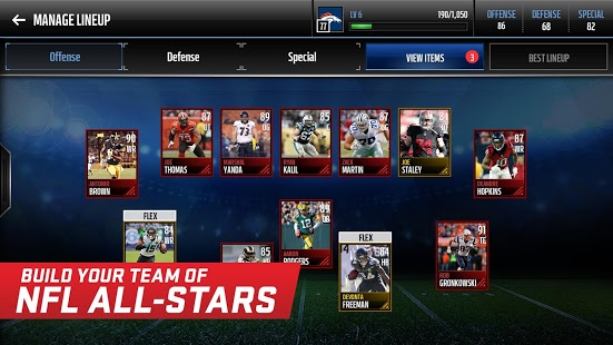 Tullut GM suosikki jalkapallon franchise ja handpick tiimisi NFL tähdet ja legendoja. Päästä peliin missä ja milloin vain Daily Live Events, Head-to-Head haasteisiin, Vuodenajat, ja uusittu liigat. Tämä on aito NFL toiminta jollaista et ole koskaan nähnyt mobiililaitteella.