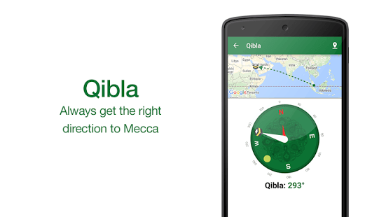 • Animated Qibla kompassi ja kartta näyttää suunnan Mekkaan
